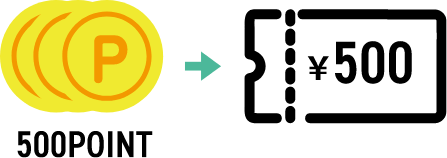 チラシにてご案内いたします。500ポイントごとに500円のお買物券を自動的に発行します。