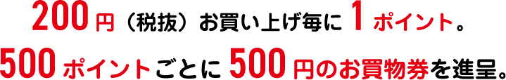 お買物ごとに200円(税抜)で1ポイント加算され、