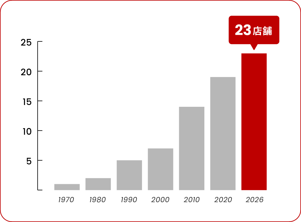 大きな転機は、1995年のAJS(オール日本スーパーマーケット協会)※への入会。AJSの考え方に共感し、上記のミッションを設定しました。以来、一貫した想いのもとで地に足がついた着実な店舗展開を行い、成長を続けています。