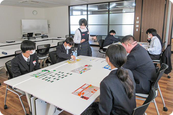 各チームがシミュレーションの結果を発表し、学んだことや感じたことを共有して いただきます。 |